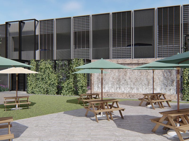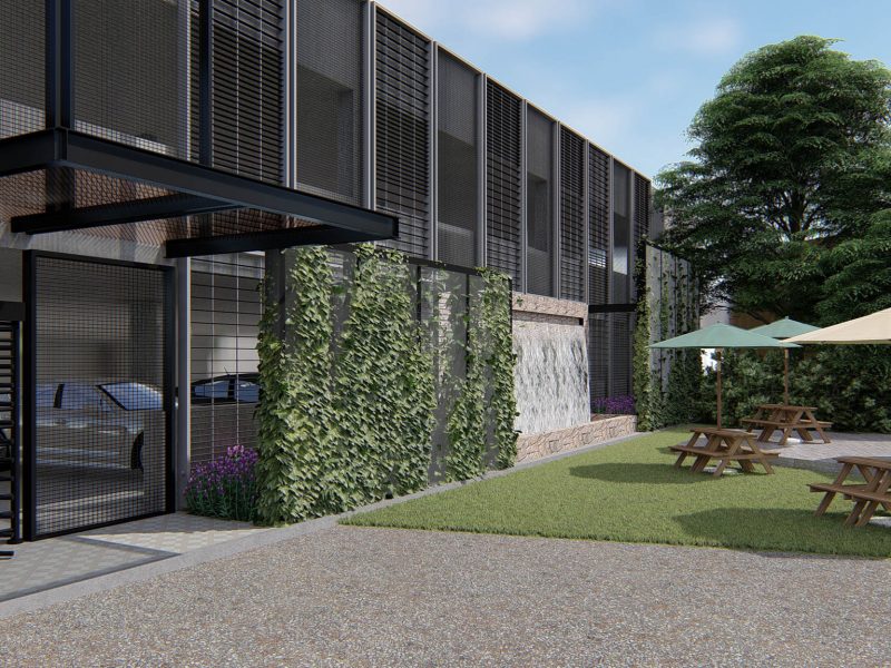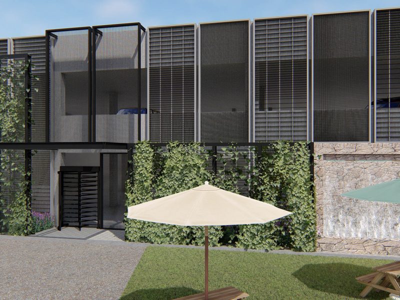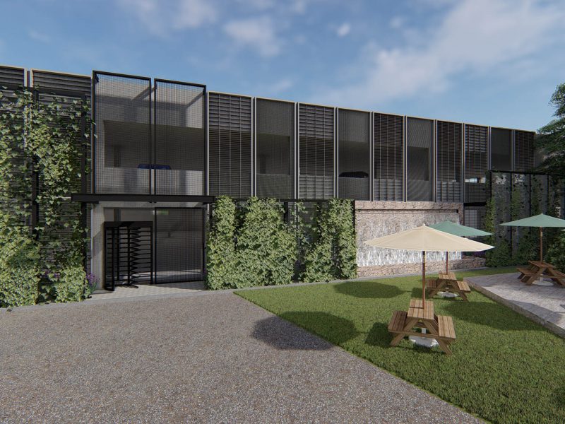 New guardhouses and designs for 1500m² three-level parking facilities at AB-InBev Sandown.