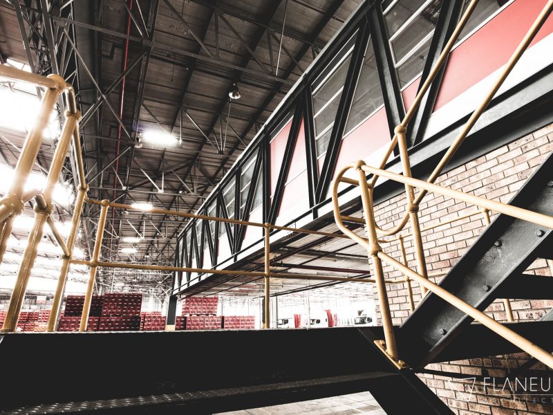 The project brief required a new mezzanine office with a floor slab span of 21.5m. This prompted the team to think creatively about the problem – The solution: Design the structures external walls as a girder truss & suspend a